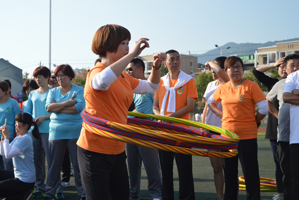 陳珍麗應(yīng)邀表演四個呼啦圈(本圖與比賽無關(guān))