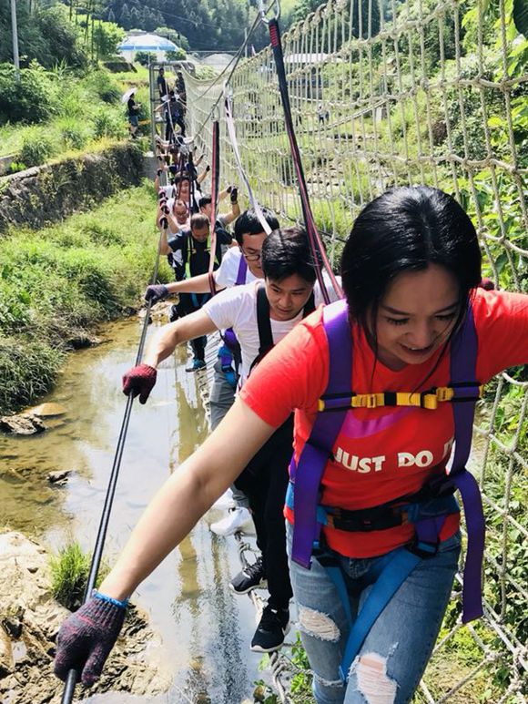 利山峽谷穿越戶外拓展項(xiàng)目線路全長(zhǎng)1000米,離水面平均高度2米,沿溪逆流而上。全程共設(shè)16個(gè)關(guān)卡,許多關(guān)卡頗具挑戰(zhàn)性,特別考驗(yàn)參與者的毅力、耐心和團(tuán)隊(duì)協(xié)作精神。項(xiàng)目體驗(yàn)過(guò)程中, 名隊(duì)員齊心協(xié)力,即使遇到舉步維艱的關(guān)卡,隊(duì)員們也不拋棄、不放棄,相互鼓勵(lì),努力挑戰(zhàn)、超越自己。在精力和體力即將消耗殆盡之際,隊(duì)員們終于迎來(lái)勝利的曙光,終點(diǎn)處五顏六色的輪胎就像一只只甜甜圈,讓通關(guān)的勇者們品嘗了“苦盡甘來(lái)”的勝利滋味。