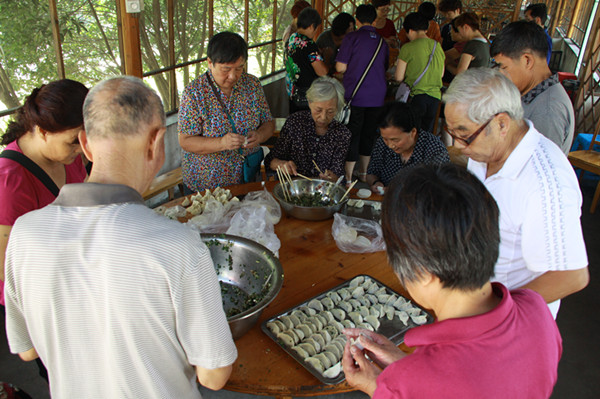 此次活動共有120多名體協(xié)會員參加,大家都想借此機會和大自然來個親密接觸,體協(xié)委員利用休息時間為大家采購了豐富美味的食物。利用新世紀(jì)綠草地依山伴水的地理資源優(yōu)勢,在秋日和煦的陽光下,在風(fēng)景秀麗的南明湖邊,我們老年人在綠草地上展現(xiàn)了 “年輕人”舞步,跳著佳木斯健身操動作,擺動雙臂,邁開雙腳,走出健康,走出幸福。當(dāng)走進餐廳看見桌子上擺好的餃子皮和餃子餡,老同志們便紛紛摩拳擦掌,躍躍欲試。他們各自分工后便熱火朝天的忙起來,現(xiàn)場笑聲不斷。