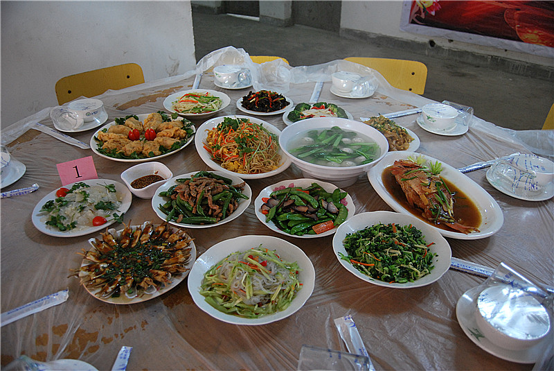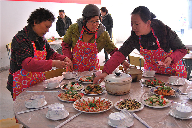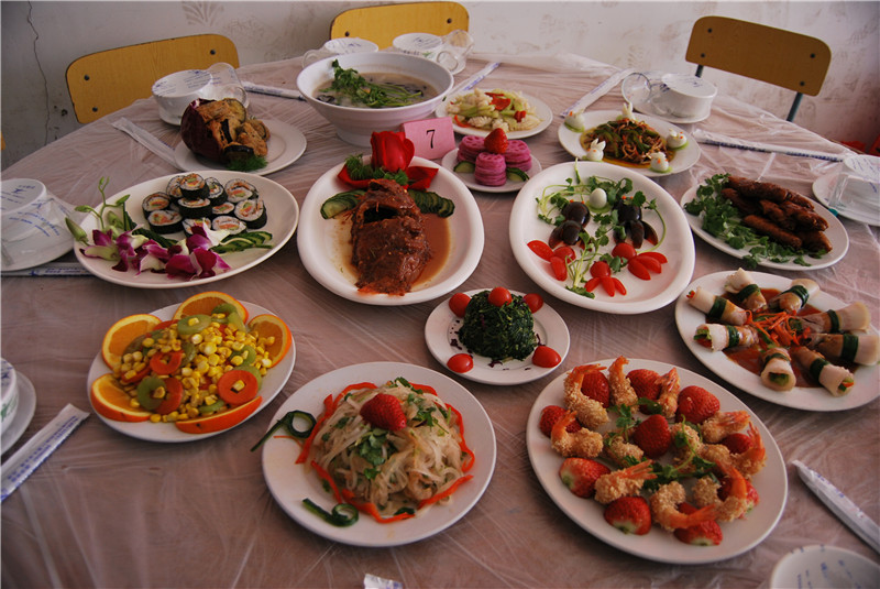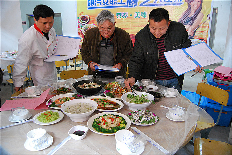 爆炒豬肝、豆腐丸子、蒜蓉大蝦……一道道誘人的家常菜端出廚房,可以看出大家伙對今天的比賽還是下了一番功夫了。由山海實訓(xùn)基地的烹飪老師組成的評委組綜合對各組燒制的菜肴的色、香、味、型,進(jìn)行打分,并對每一道菜品進(jìn)行了點評??炜头止尽⑽锪鞴韭?lián)隊和技術(shù)學(xué)校、南明賓館聯(lián)隊分獲一、二等獎。