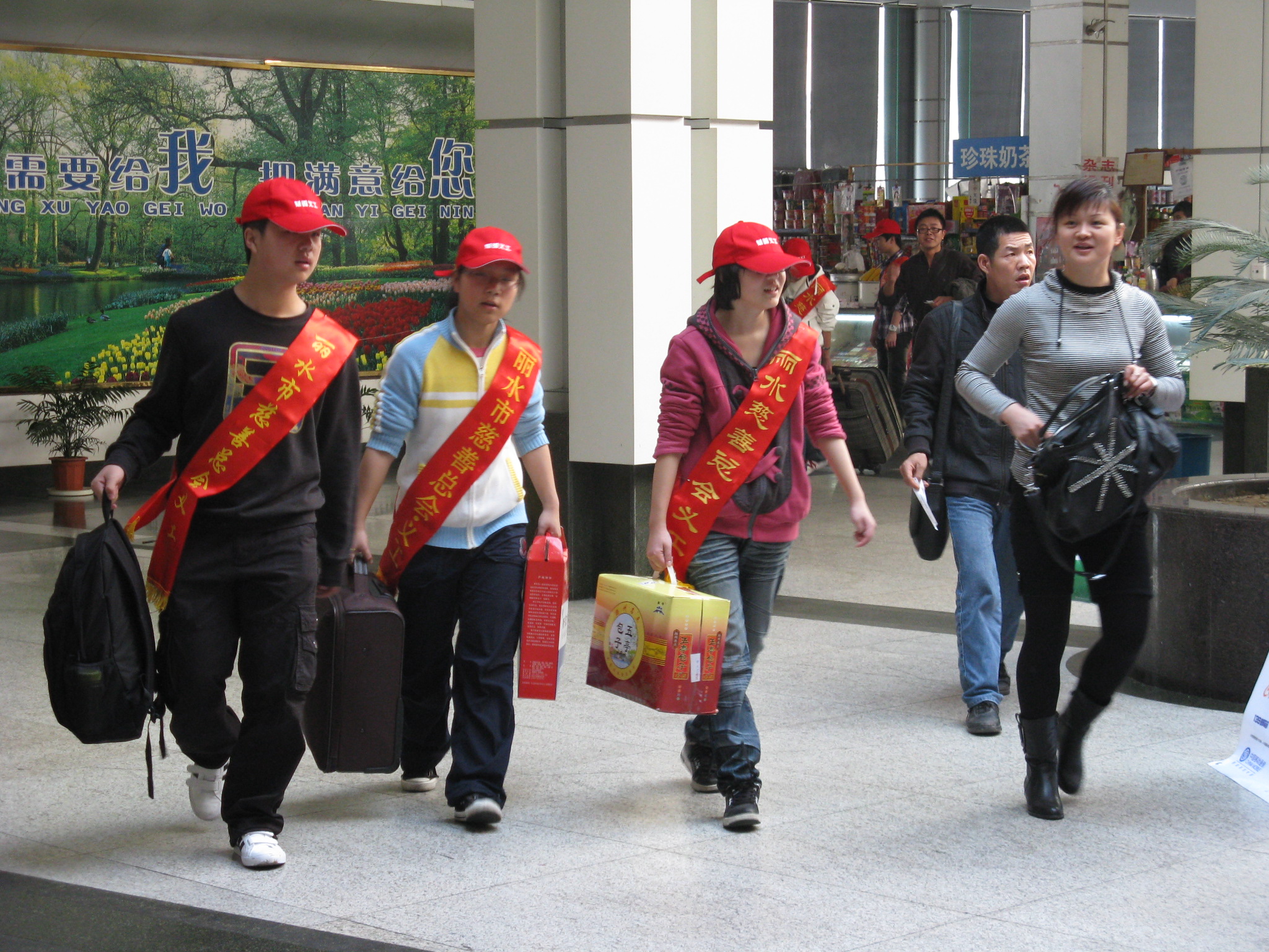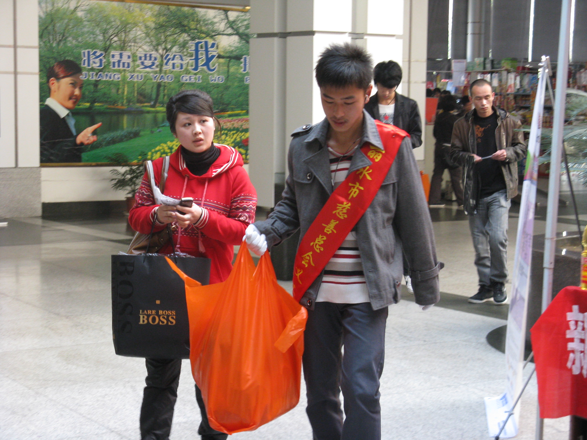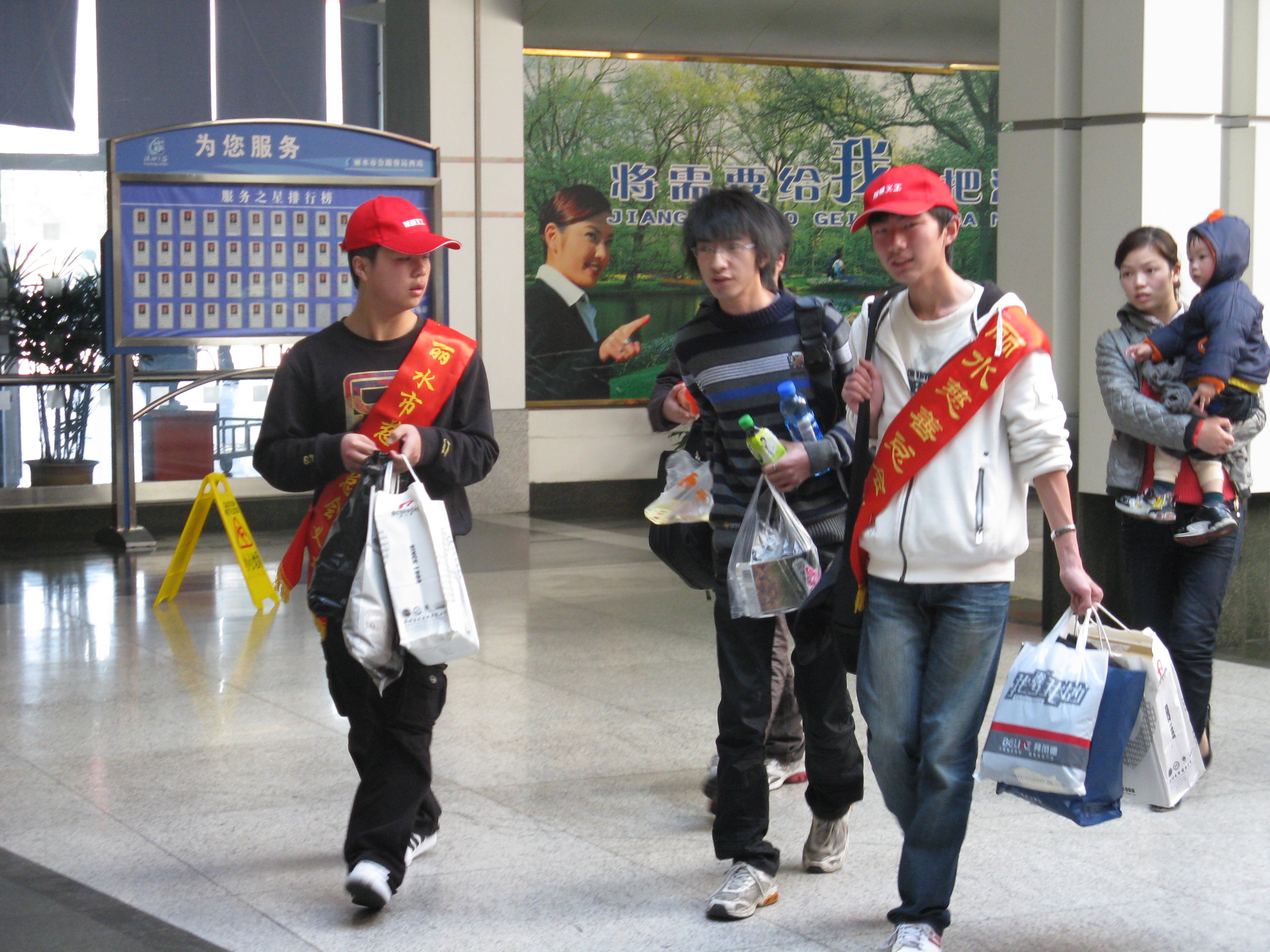 2月10日早,麗水客運東站、客運西站站場出現(xiàn)了一大批“小紅帽”,他們穿梭于售票大廳、候車室、發(fā)車區(qū)、下客區(qū)等處,有的熱情幫助旅客提行李;有的為在一旁候車的旅客送上熱騰騰的開水;有的抱小孩扶老人上車;還有的在危檢儀旁勸導(dǎo)旅客將行李進行危檢。一個個忙得不亦樂乎!成了春運現(xiàn)場的一道亮麗風(fēng)景。 這些“小紅帽”來自麗水市慈善總會,他們當中有義工,有受慈善總會捐助的學(xué)生,一共20余人。一個個都頭戴小紅帽,身披市慈善總會的授帶。特意來到客運東、西站,為南來北往的旅客送上熱情的幫助。他們的到來,得到旅客的贊許。