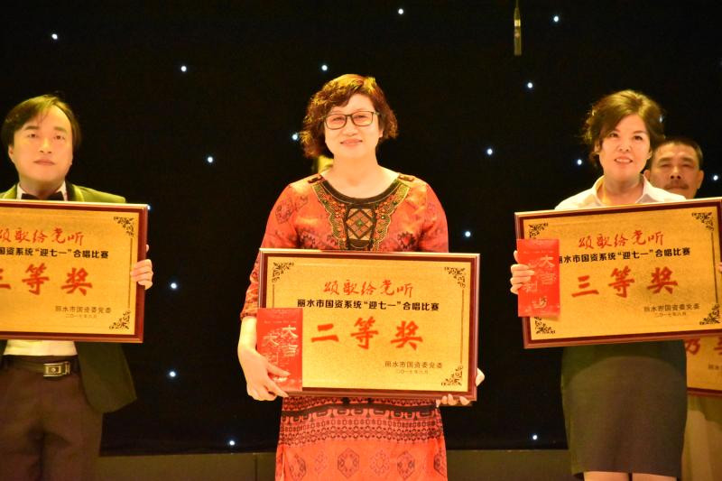 “在我們麗水有著一家80多年歷史的道路運(yùn)輸企業(yè),她從一條羊腸小道、兩部舊車?yán)_了我們秀山麗水的公路運(yùn)輸發(fā)展序幕,歷經(jīng)抗日戰(zhàn)爭,解放戰(zhàn)爭到改革開放的洗禮,她一路風(fēng)雨兼程,現(xiàn)如今,她成為了一個擁有旅游文化、汽車服務(wù)、道路運(yùn)輸、房地產(chǎn)四大產(chǎn)業(yè)板塊并趨的集團(tuán)企業(yè),從無到有,由弱到強(qiáng)。她始終在綠水青山就是金山銀山的幸福麗水大建設(shè)的康莊大道上拼搏創(chuàng)新,一路前行不息?!?br /> 6月29日晚的蓮城劇場里,麗水市國資系統(tǒng)組織了一場主題為“頌歌給黨聽”的“迎七一”合唱比賽,在主持人的介紹后,麗汽集團(tuán)合唱團(tuán)以一曲激情高亢的《天路》征服了所有在場觀眾。演員們身著司服上場,胸佩黨徽,個個精神飽滿。三個聲部韻律清晰,天籟般的嗓音、蕩氣回腸的演唱,仿佛讓大家置身于壯闊的雪域高原,博得了評委及現(xiàn)場觀眾的陣陣掌聲。