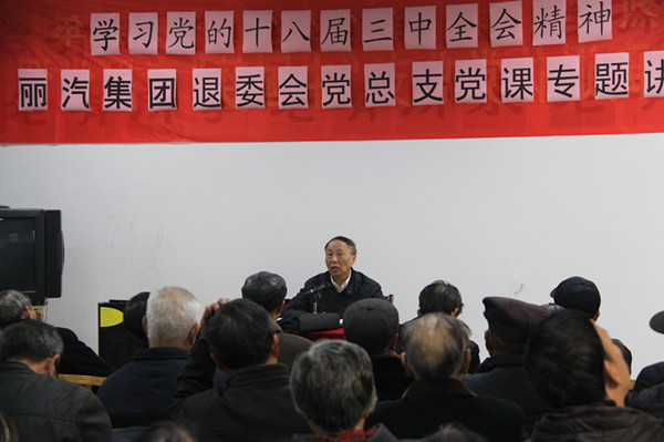 為把學(xué)習(xí)貫徹黨的十八屆三中全會(huì)精神引向深入, 11月28日麗汽集團(tuán)離退委黨支部特邀請(qǐng)麗水黨??妈b清副教授給100余位黨員上了一堂以“學(xué)習(xí)十八屆三中全會(huì)精神”為主題的黨課,從中國(guó)的形勢(shì)、會(huì)議內(nèi)容,行政體制改革和轉(zhuǎn)變政府職能等方面進(jìn)行宣講,進(jìn)一步深化了離退休黨員對(duì)全會(huì)精神的理解。