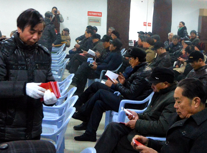 宣貫會(huì)前,工作人員還向參會(huì)的黨員同志發(fā)放了新版《黨章》,老同志們迫不及待地認(rèn)真翻閱了新《黨章》。
