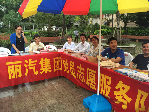 活動(dòng)當(dāng)天,麗汽集團(tuán)的黨員們一早就來到燈塔公園,面向廣大群眾展開了汽車班車時(shí)刻咨詢、汽車銷售維修、汽駕培訓(xùn)咨詢、旅游咨詢、房產(chǎn)銷售咨詢等多項(xiàng)服務(wù)。雖然天空中飄著雨,但黨員同志和社區(qū)群眾的熱情不減,短短半天時(shí)間,黨員們共向到場(chǎng)群眾發(fā)放宣傳冊(cè)頁及資料2000份,解答咨詢60人次,贈(zèng)送雨傘200余把,紙巾100盒,環(huán)保袋500只,惠及群眾800人次。