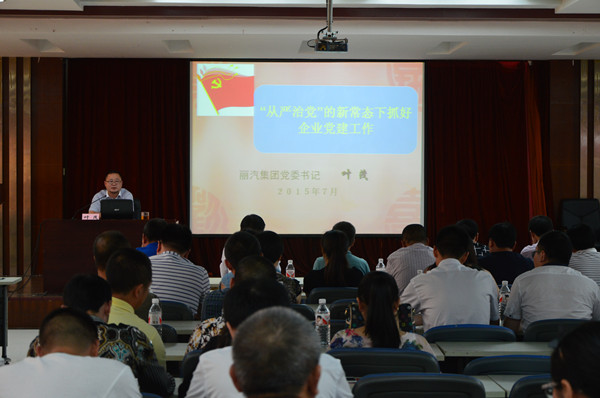 7月16日下午,麗汽集團(tuán)黨委組織開展了一次“在職黨員學(xué)黨章、黨委書記上黨課”活動。與會的120余名在職黨員手捧鮮紅的《中國共產(chǎn)黨章程》,觀看了電教片《與時(shí)俱進(jìn)話黨章》,認(rèn)真聆聽了集團(tuán)公司黨委書記葉茂親自主講的《“從嚴(yán)治黨”的新常態(tài)下抓好企業(yè)黨建工作》專題黨課。