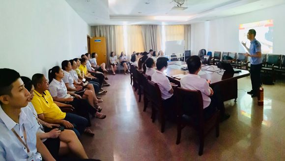 為了加強員工的防火安全意識, 2019年8月2日早會在五樓會議室開展火災現(xiàn)場逃生技術及消防知識培訓。旅游集散中心全體員工以及旅游汽車分公司安全管理人員參加。